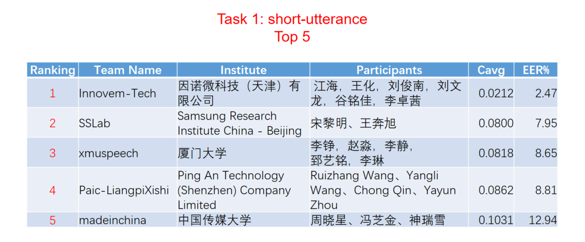 1、短语音语种识别:该任务所要识别的语音时长仅为1秒。