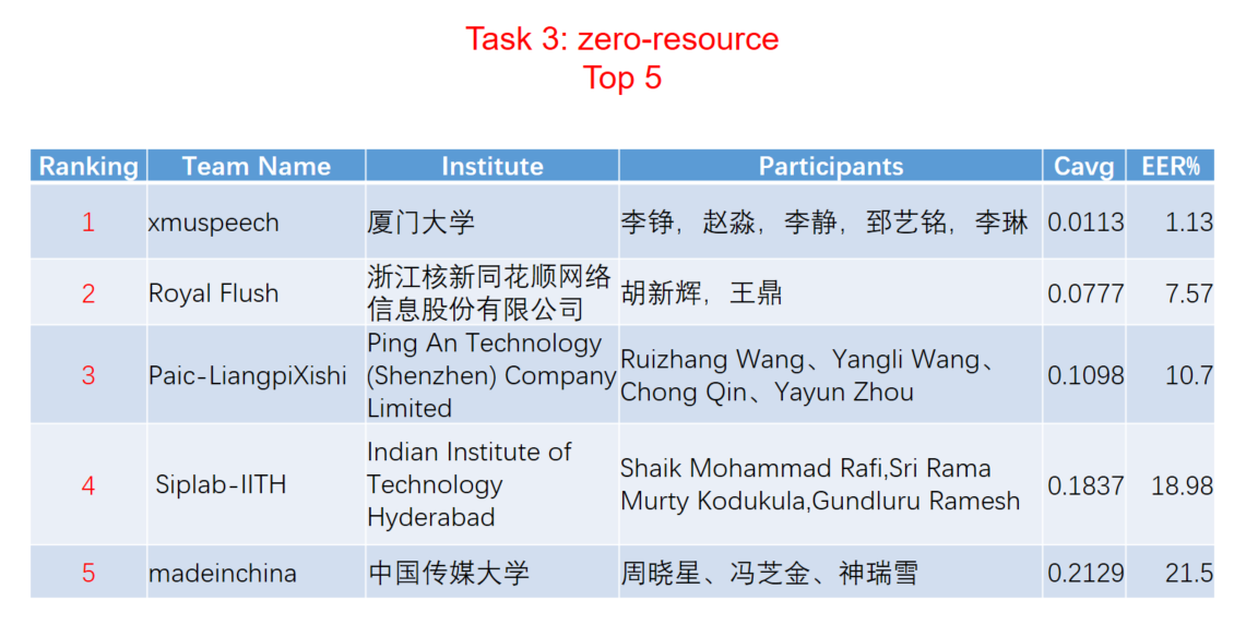 本文展示的赛事成绩排名相关图片来源自OLR 2019 Challenge官方网站,更多赛事相关信息可以查看:http://cslt.riit.tsinghua.edu.cn/mediawiki/index.php/OLR_Challenge_2019?from=groupmessage&isappinstalled=0