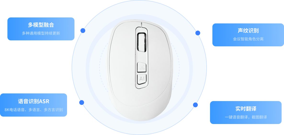 声云AI语音鼠标是一种融合人工智能技术的创新鼠标,具备语音转写、多语言翻译、方言识别、智能控制、内容生成等功能,能提高工作和学习效率,适用于多种场景,带来便捷的人机交互体验。